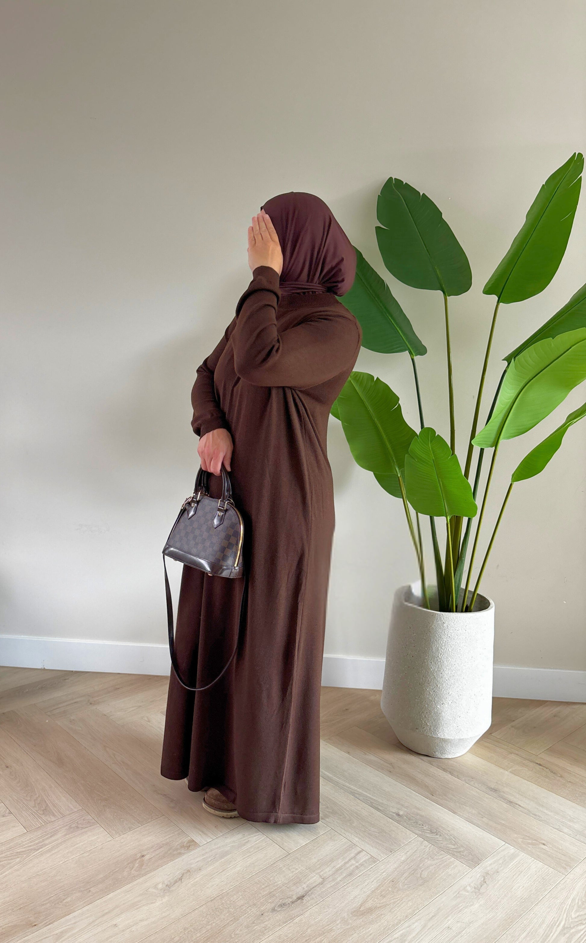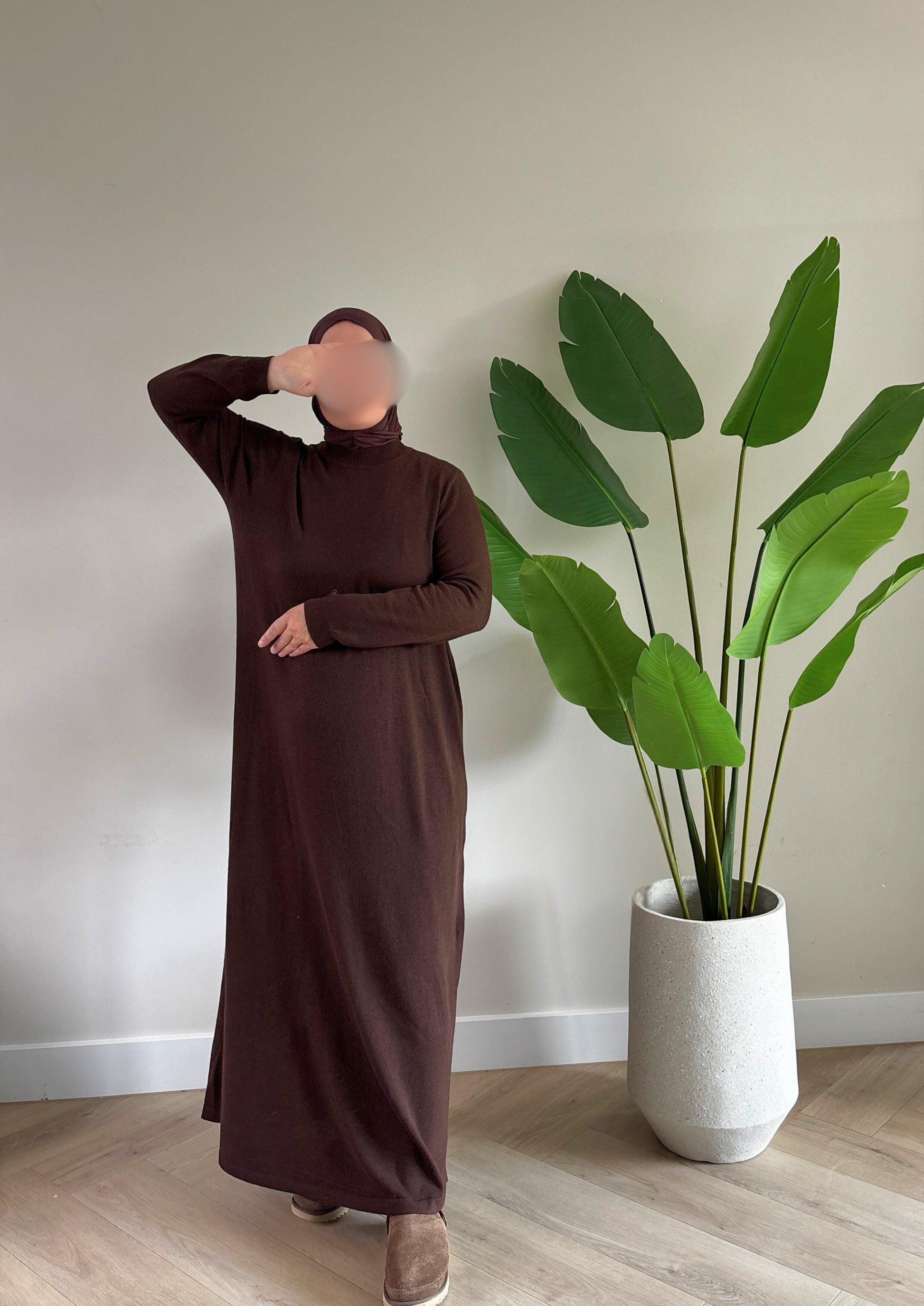De Cosy Knit Dress van Aicha Essentials is een elegante en comfortabele jurk die onmisbaar is in je herfst- en wintergarderobe. De zachte knit-stof voelt heerlijk aan en de losse pasvorm zorgt voor ultiem draaggemak. Met zijn warme bruine kleur en minimalistisch design straalt de jurk tijdloze klasse en eenvoud uit.