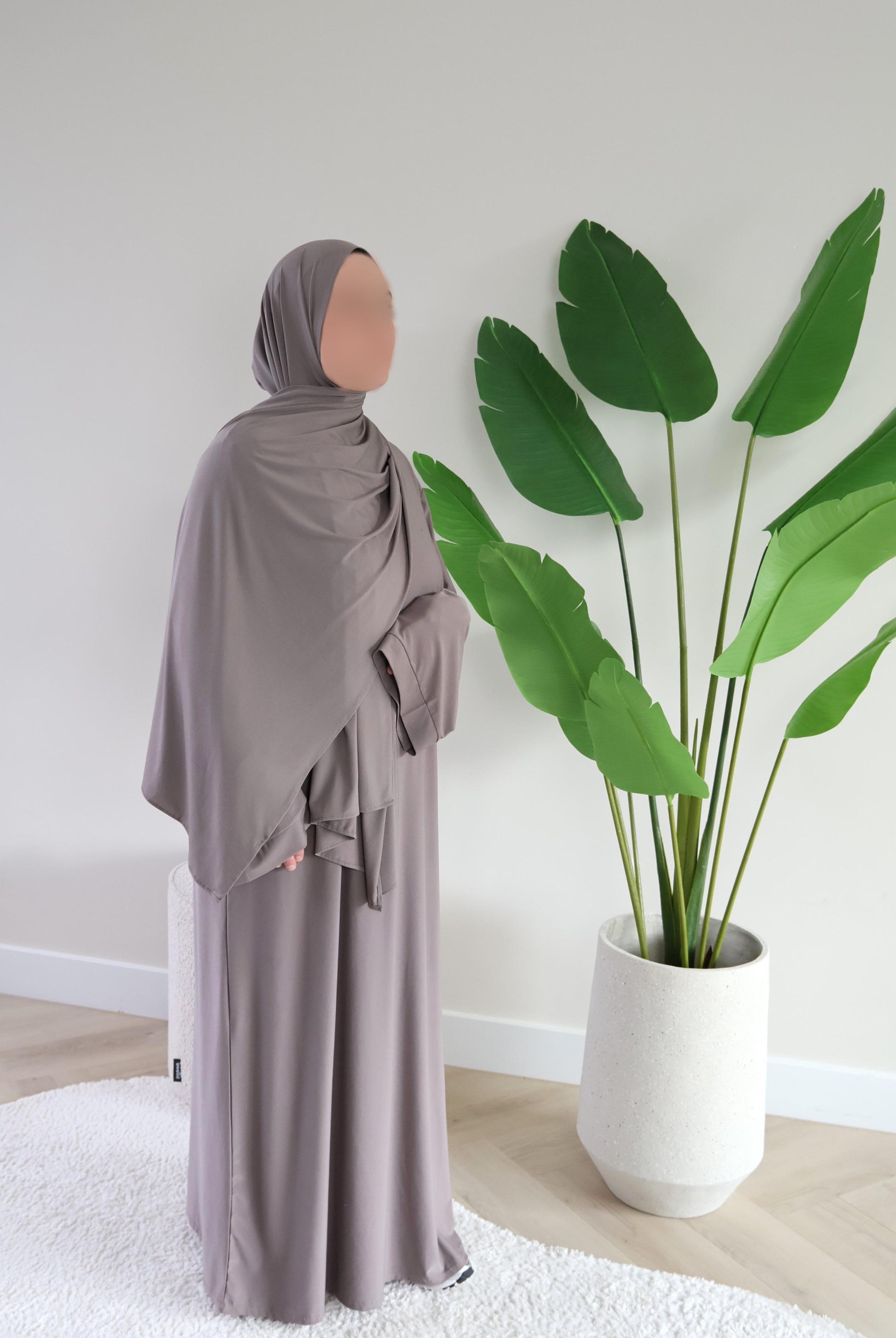 De sjaal is vervaardigd uit exact dezelfde stof en materiaal als de Essential Khimaar Set, en wordt in dezelfde kleuren geleverd. Hierdoor is de sjaal perfect te combineren met de abaya uit die set, voor een complete, stijlvolle en harmonieuze look.